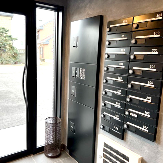 - 駐車場(10台)、エレベーター、ナースコール、リビングルーム、Free Wi-Fi、一般浴室、共用トイレ、各室インターホン設備(ナースコールとは別)、玄関ホール、自販機、車椅子用トイレ、避難設備、防災設備、食品庫、ダイニングルーム(食堂)、駐車場、駐輪場