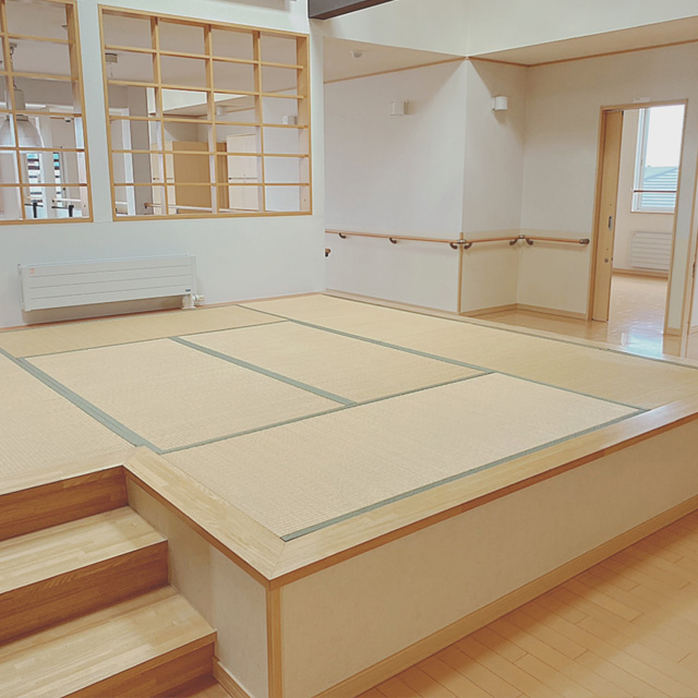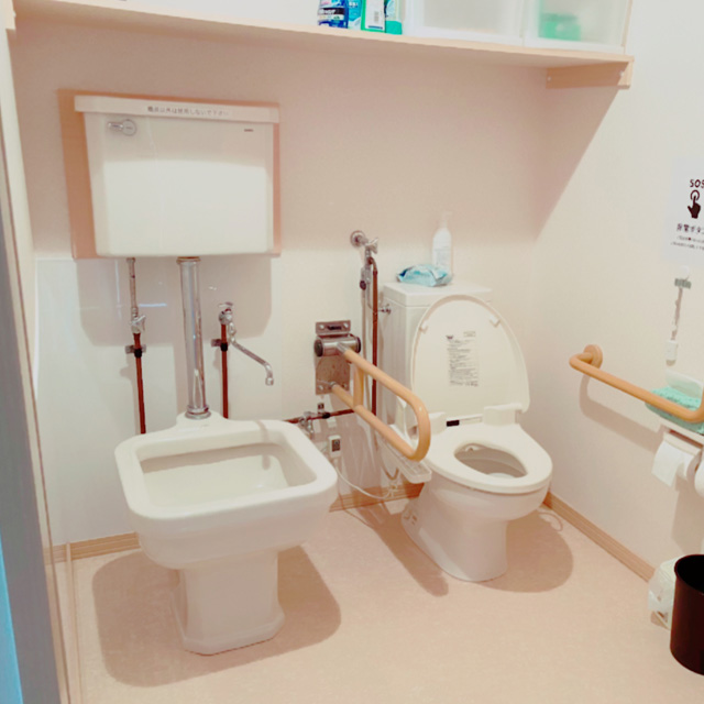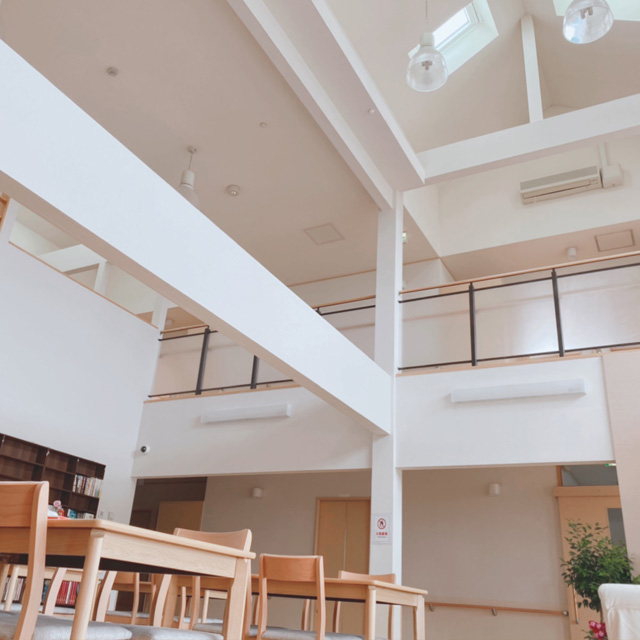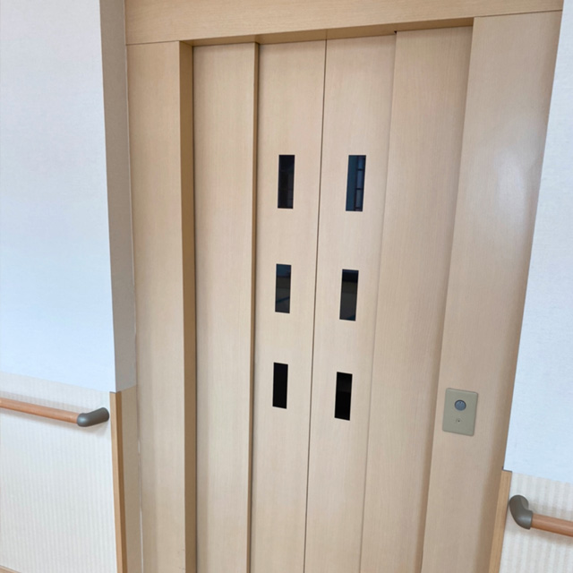 - ウッドデッキ、エレベーター、ナースコール、リビングルーム、バーベキューコーナー、Free Wi-Fi、一般浴室、中庭、共用トイレ、各室インターホン設備(ナースコールとは別)、和室、家庭菜園、応接室、洗濯室、洗面室、玄関ホール、自販機、花壇、足浴、車椅子用トイレ、避難設備、防災設備、食品庫、ダイニングルーム(食堂)、駐車場、駐輪場